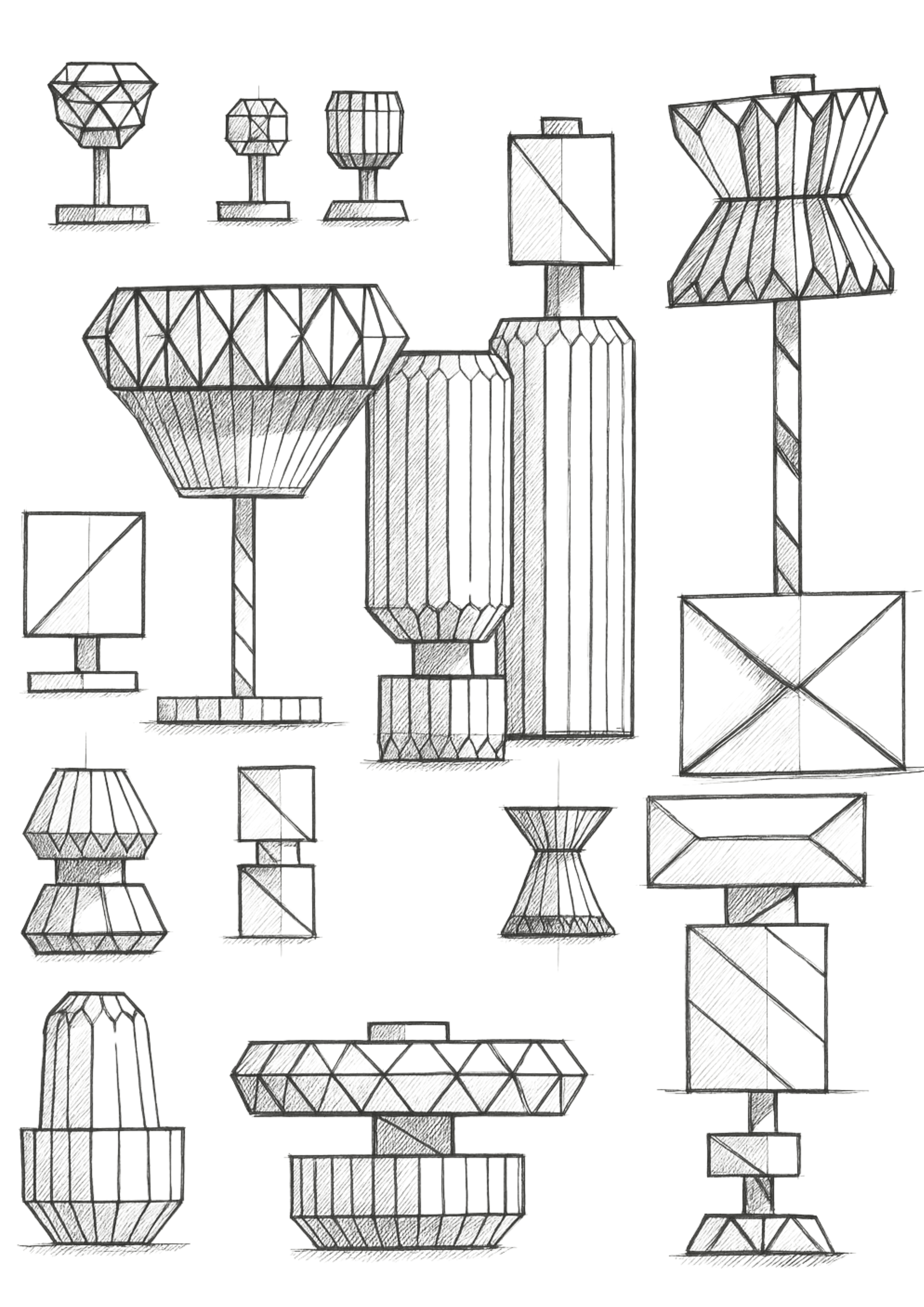 Experimenting with different forms and design languages, using sketching as a way to explore possibilities and test ideas. Each variation helps me better understand what I want to achieve visually, gradually shaping a clearer direction for designs.