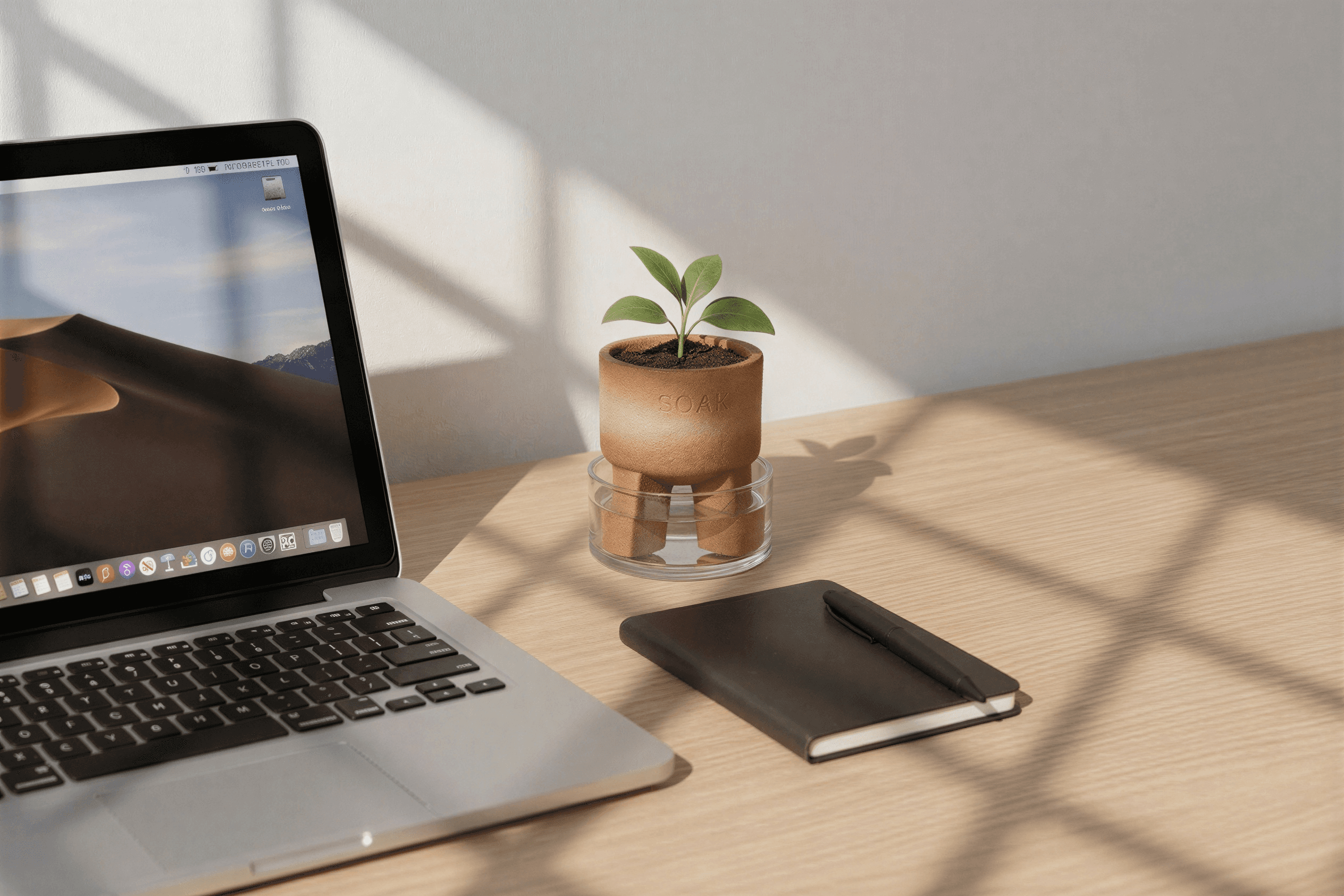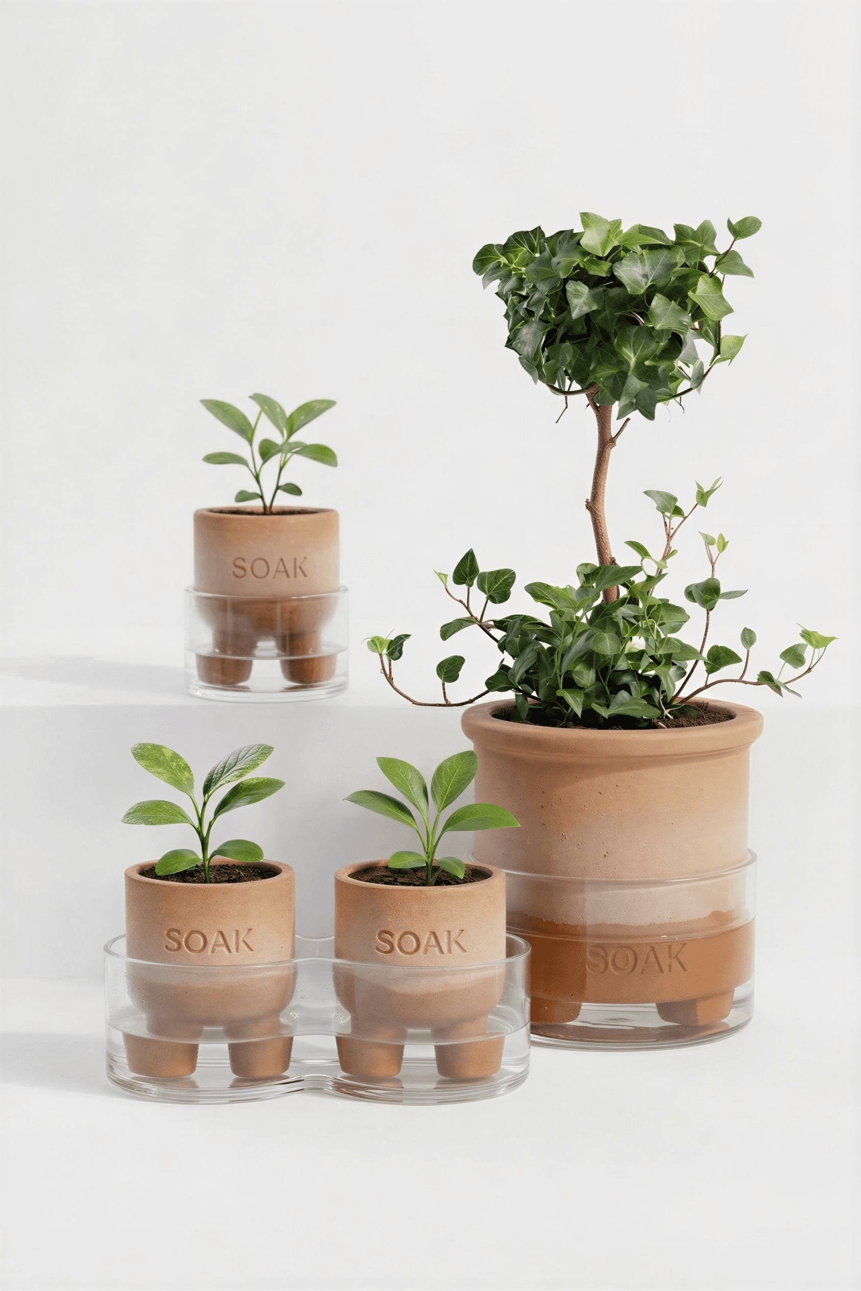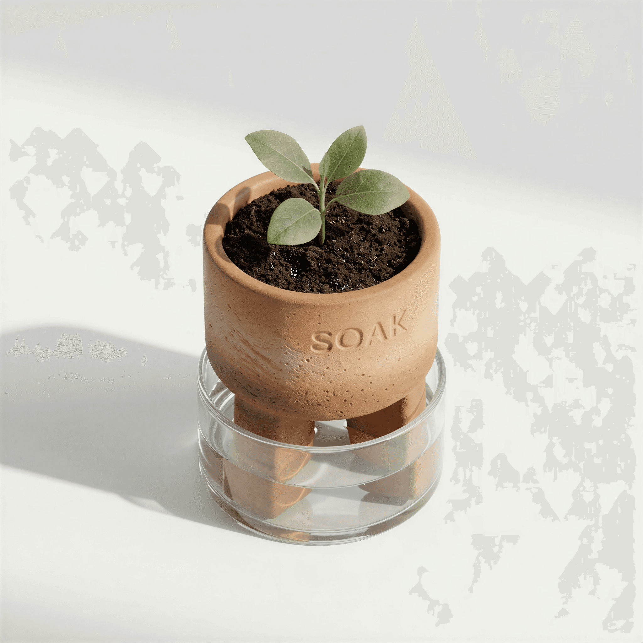 Soak reimagines the ancient Olla watering technique for a contemporary indoor setting. Traditionally buried and hidden, the system is brought above ground, transforming a functional process into something visible and engaging within the home. Made from terracotta, the vessel allows water to slowly permeate through its porous surface, providing plants with a consistent, self-regulated supply. The form is intentionally simple, designed to sit quietly within a space while expressing the natural material and process. By combining traditional craft with a modern sensibility, Soak encourages a slower, more mindful interaction with everyday objects. It turns the act of watering into a subtle ritual, where function, material, and experience come together in a considered and meaningful way.